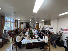 丹桂飘香,情暖重阳。为弘扬中华民族尊老敬老的传统美德,表达对已退休老领导老前辈的关怀与敬意,10月28日中午,304am永利集团于环建楼306会议室举办了乙巳年重阳节联谊会。校组织部副部长李景玉、公司党委书记卢萧、党委副书记周蓉、校关工委副主任黄慧、党委工会主席常飞与全体退休教师欢聚一堂,共庆重阳。活动由党委副书记周蓉主持。